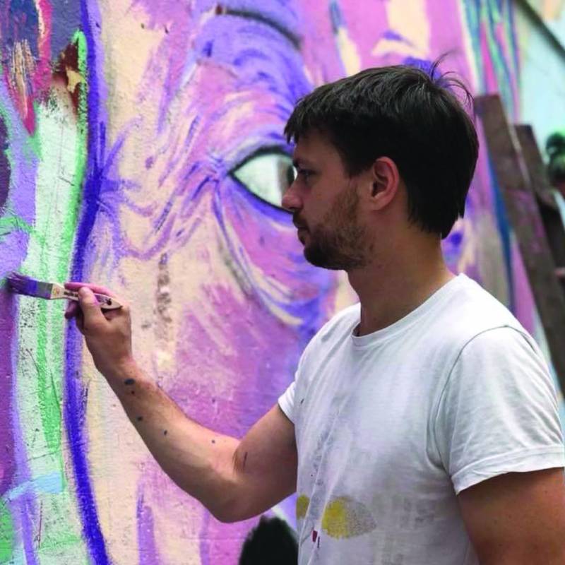 After studying art at the Universität der Künste in Berlin (UdK), he began to work in classical painting. His abstract works are colorful and unconventional and show an unmistakable and unique character. Despite his worldwide success (shows in Paris, London and Basel, amongst others), he has remained true to his artistic roots on the street and continues to design art walls. Remarkably, Damian Yves Rohde is one of the most important street artists in Cuba. All of Havana is adorned with his (legal) artworks, created over the past decade. No local artist has painted as much in the island’s streets as he has.