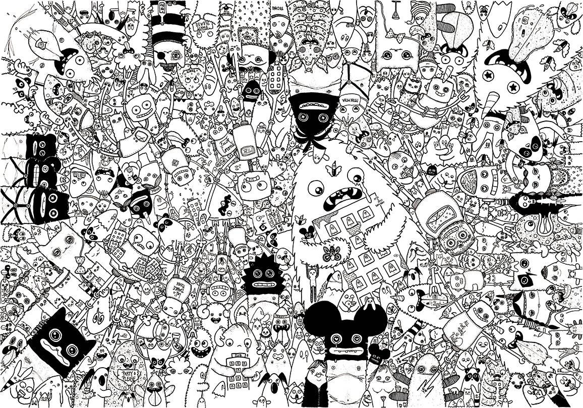 Ghosts, cats, monsters and robots, all masterfully drawn down to the finest detail, are stuck on entrance doors and under rain gutters, beautifying dirty corners and house walls. All originals and all in black and white. Her signature style has brought her to places such as Botswana, NYC and galleries across Europe. The artist, who has created her own genre through her work, lives and works in Berlin.