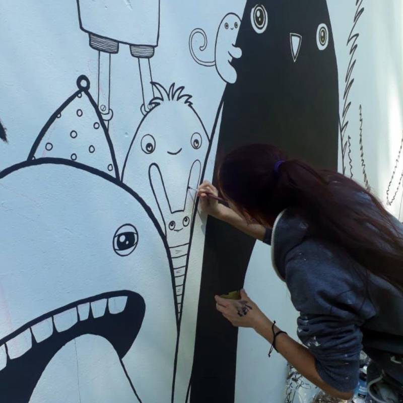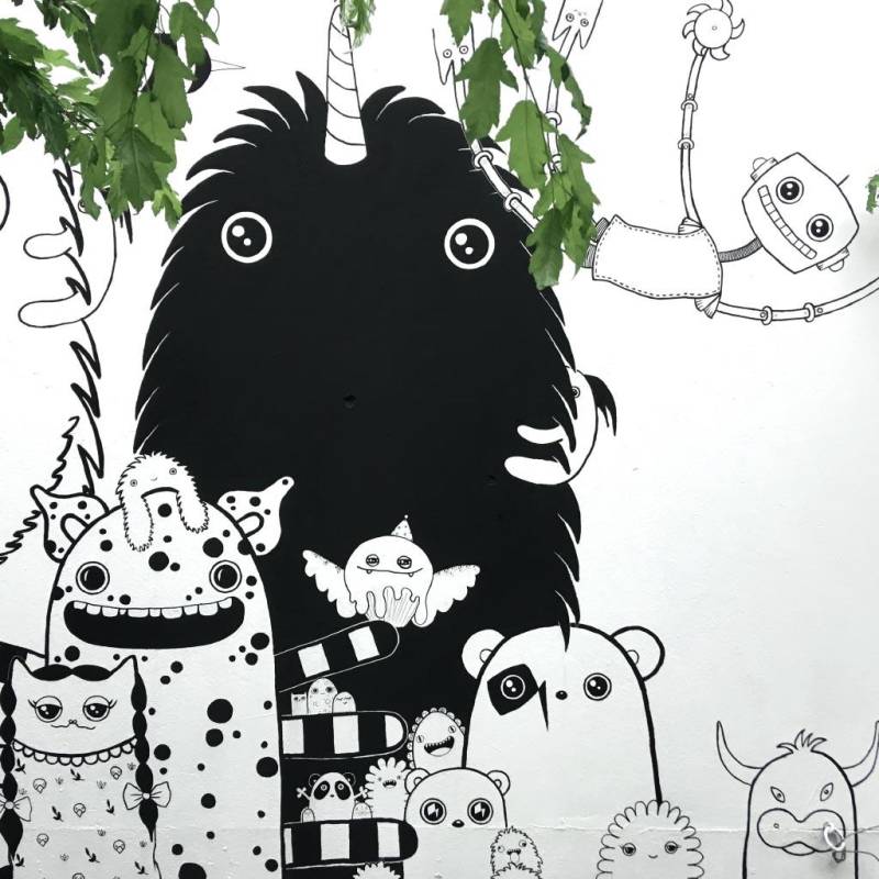 Rabea Senftenberg is one of the most famous street artists in Germany and one of the most important female representatives of this style. Her art is not in any way linked to the supposedly ubiquitous spray can; as she never uses it. Rather, ink, markers, Indian ink, pens are her means of creating her own universe on the streets.