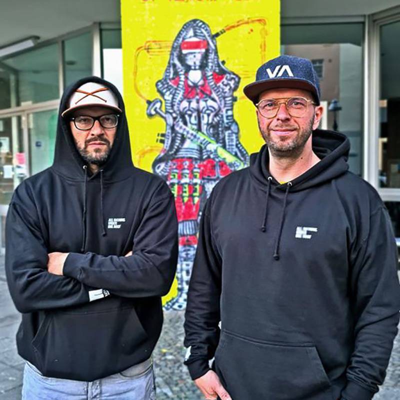 RON MILLER is a Berlin-based artist duo made of Ronny Kindt and Marcus Klüh. Best friends, both artists are self-taught. Active in the scene since 2016, they share the same roots in pop art and urban culture. What defines RON MILLER is their unique approach to making art as a duo and the resulting artistic language that is born out of a harmonious synergy between the two; though Ronny and Marcus often work from completely opposite start-points.