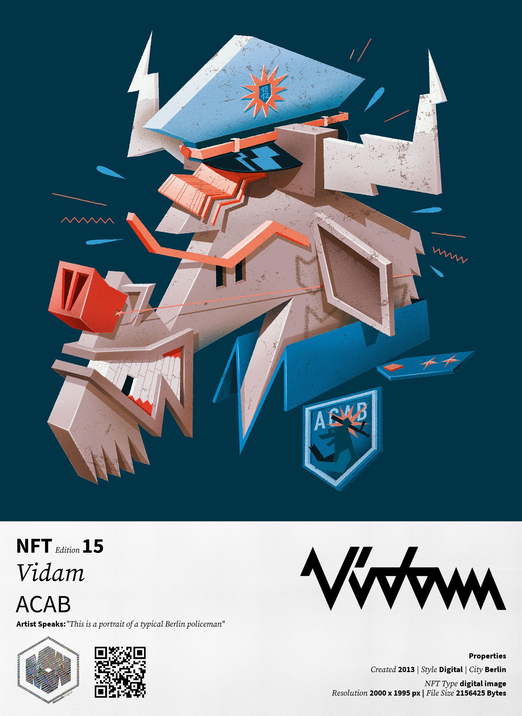 6.666 x 6.649 px | 400dpi, high definition artwork capture is available to verified owners of this NFT. To access, connect your wallet to the Metawalls website and click the appearing 'Access Content' button to start the download.