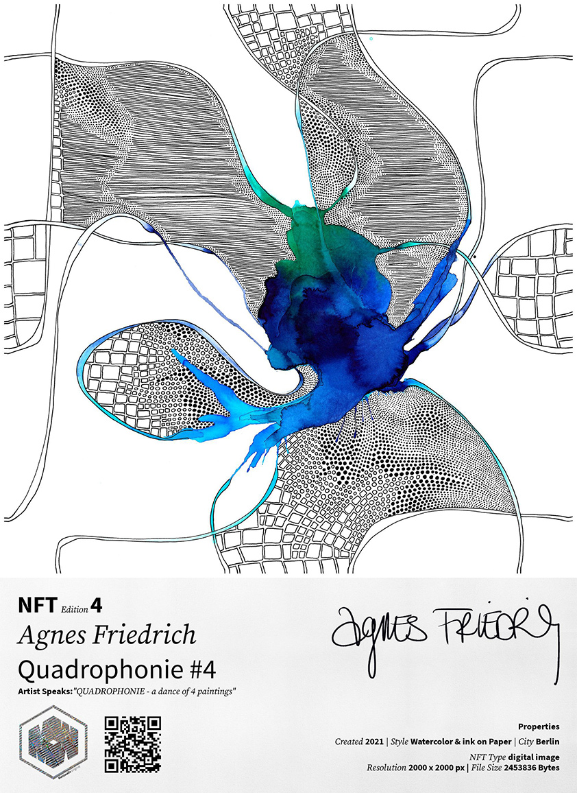 The origins of the artwork ‘Quadrophonie’ are 4 individual paintings that can be reformed in 256 “possibilities”, and were displayed as an interactive installation at Widerkunst in the Holzmarkt Berlin, in 2020. A mechanism allows the four images to be rotated and thus recombined; looking to abolish the usual way of looking at pictures.