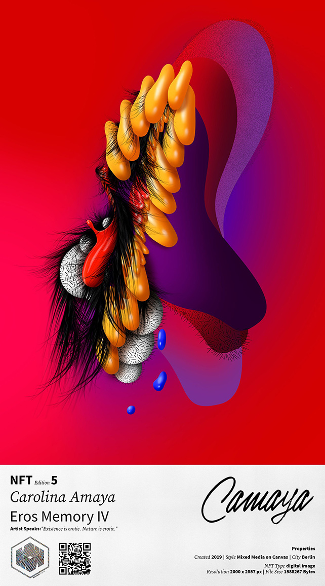 During the last 3 years of working and living in Berlin, the Latin American artist CAROLINA AMAYA has been researching and exploring how colour affects human behaviour, and how these vibrations could be connected with erotism. She states that existence and nature is erotic.
