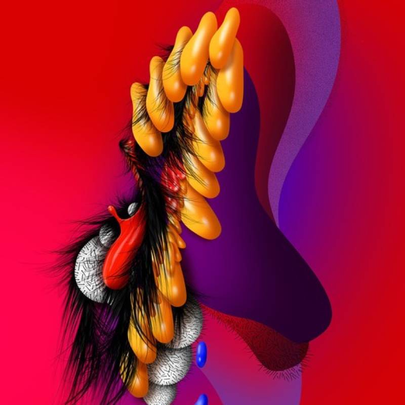 To emphasise this unusual effect, Amaya employs a palette of saturated colours and juxtaposes textures of organoleptic origin. This is why all her works should be seen as one. From drawing to installation, digital, painting or the creation of objects: all explore the same topic from different dimensions. This series of digital paintings reflect on the decision-making process between virtual sexual fantasies and physical contact.