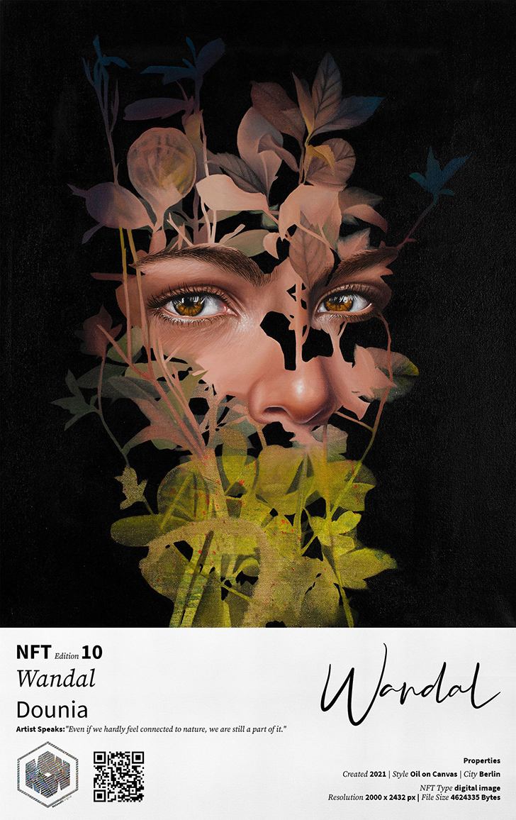 ‘Nature's View’ is a series of oil on canvas works that combines his love for nature with his interest in portrait painting. These artworks capture the viewer through a focus on the eyes, the view from which is employed in conjunction with a floral patterning that further abstracts the portrait. Wandal reminds everyone to take moments for themselves, to think about the inner world and environment and similarly important topics.