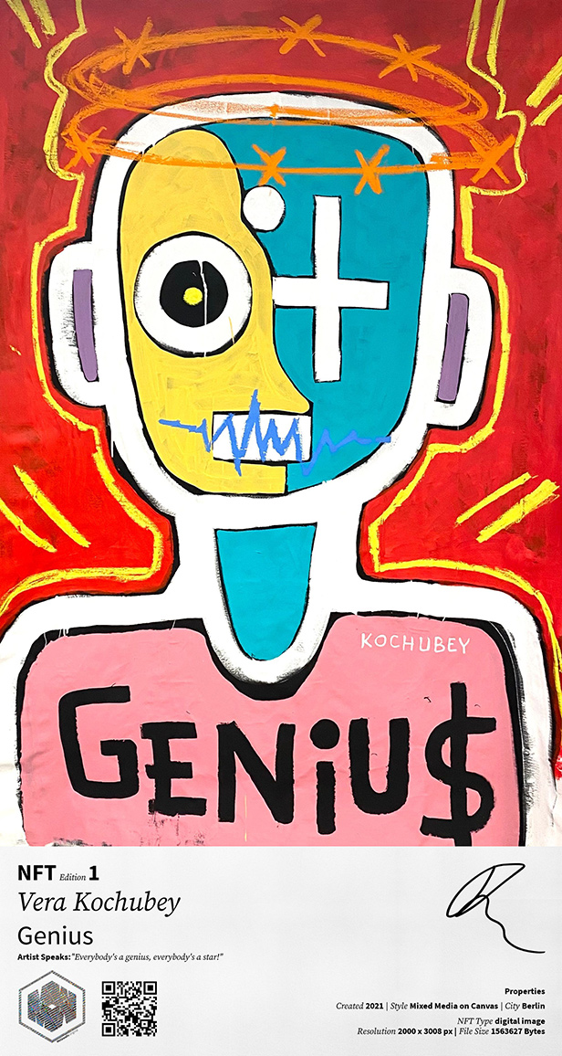 The artwork ‘Genius’ makes references to the life work of Andy Warhol & Basquiat, who she sees as role models. The phrase, “Everybody's a genius, everybody's a star!” seems like an extension on the philosophy of Warhol, that everyone will be famous for 15 minutes.