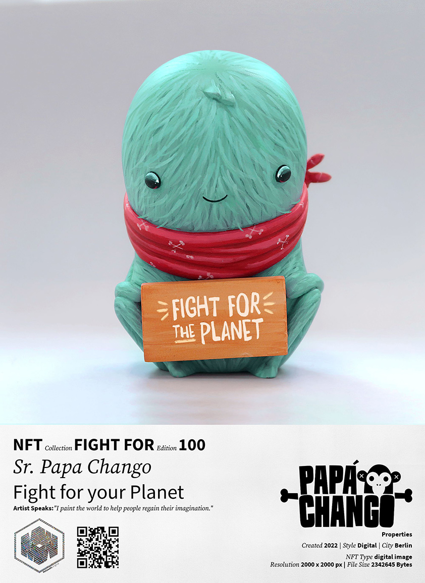 The Collectibles are an extension of SR. PAPA CHANGO‘s ‘Fight For’ sculptures and are a reminder to stand up for the good things in life. The Monsters come in different colours and with a variety of subjects.